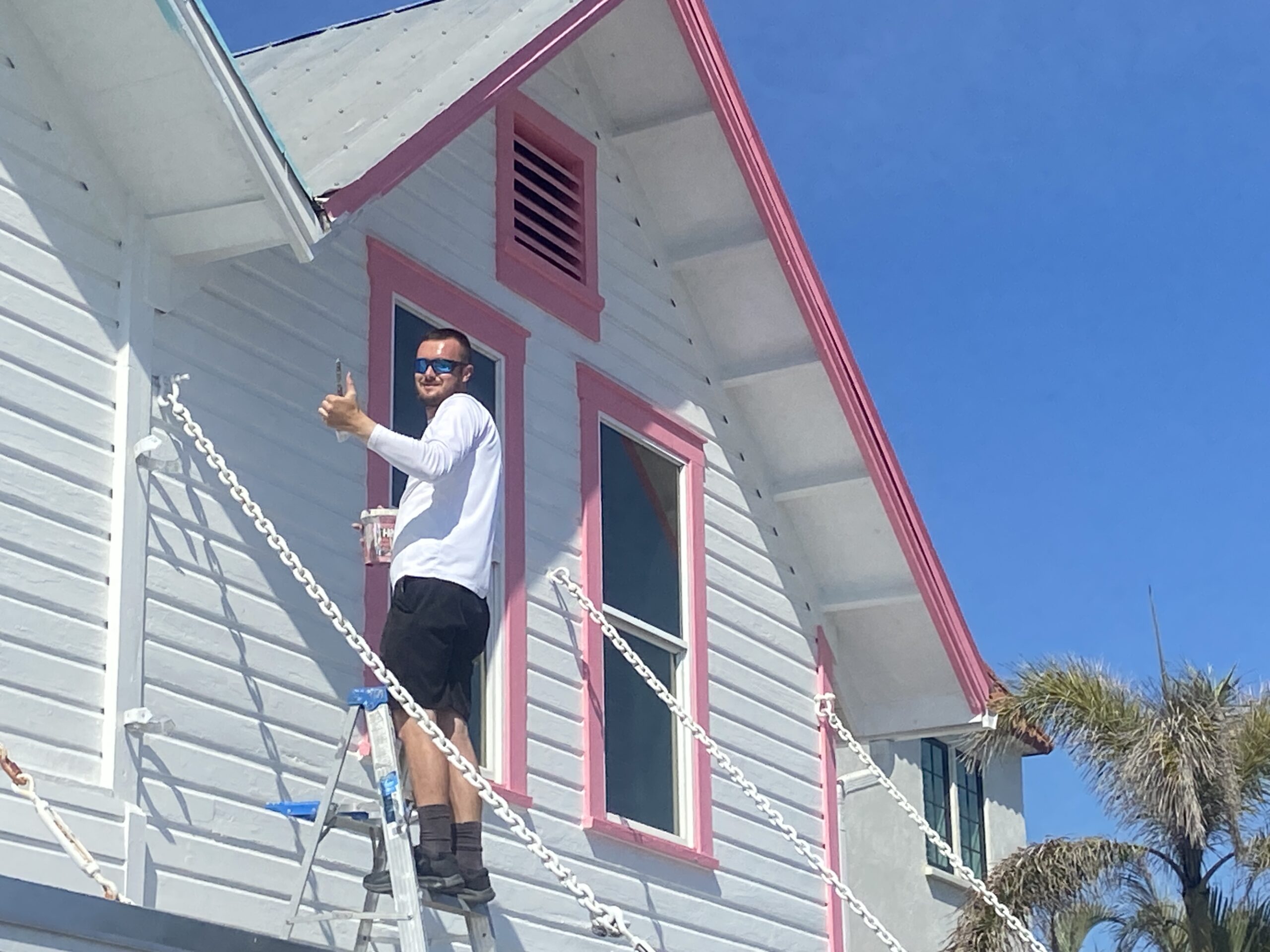 Aiden Douglas was out repainting the pink trim on the porch roof of The Pink Pony on Monday, part of a team from Murphy Dou…