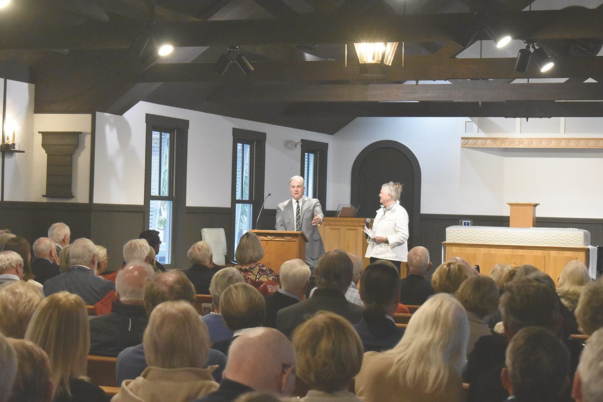 At the Mount Vernon lecture last week, Doug Bradburn with Marta Howell of Friends of Boca Grande. The event was held at St…
