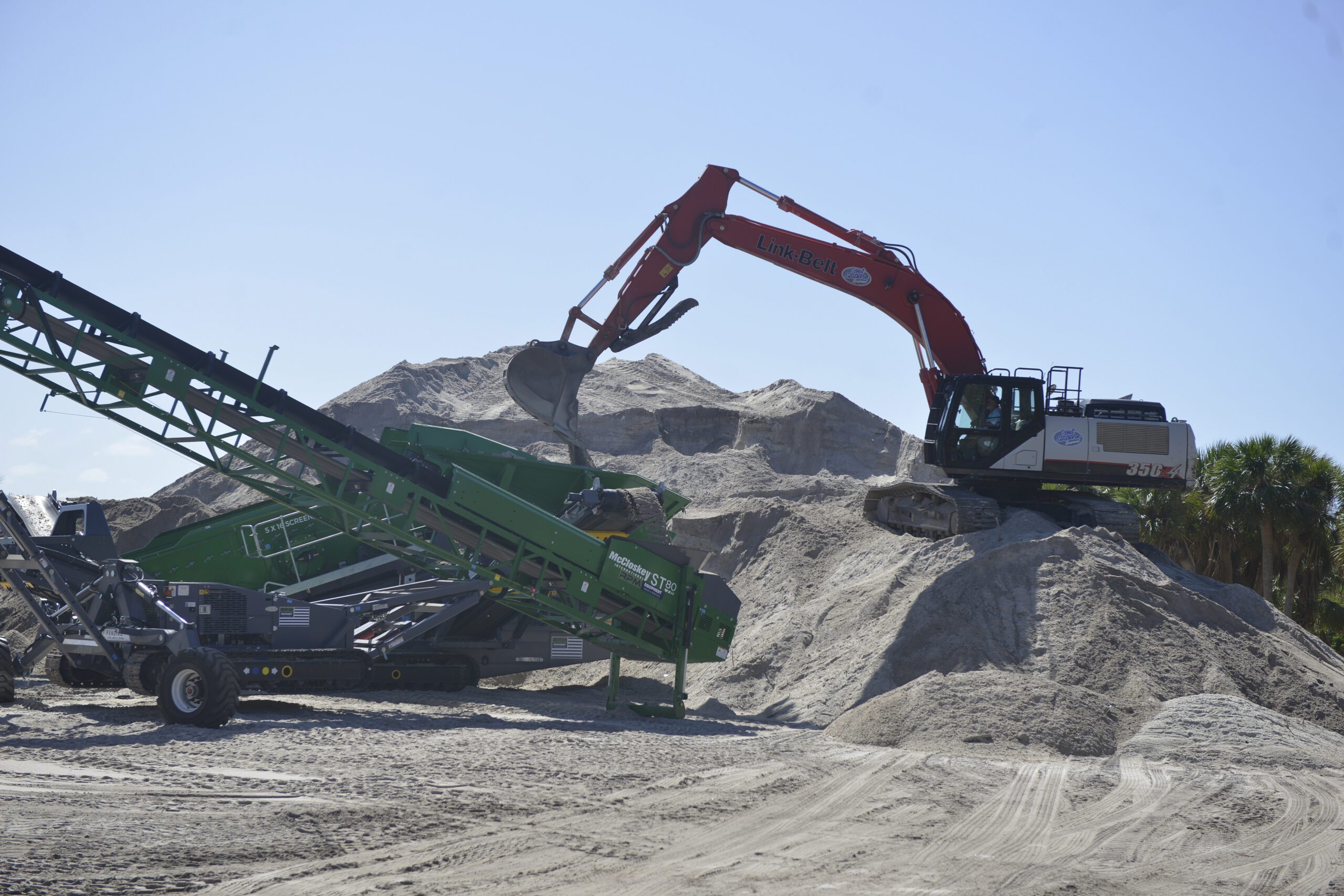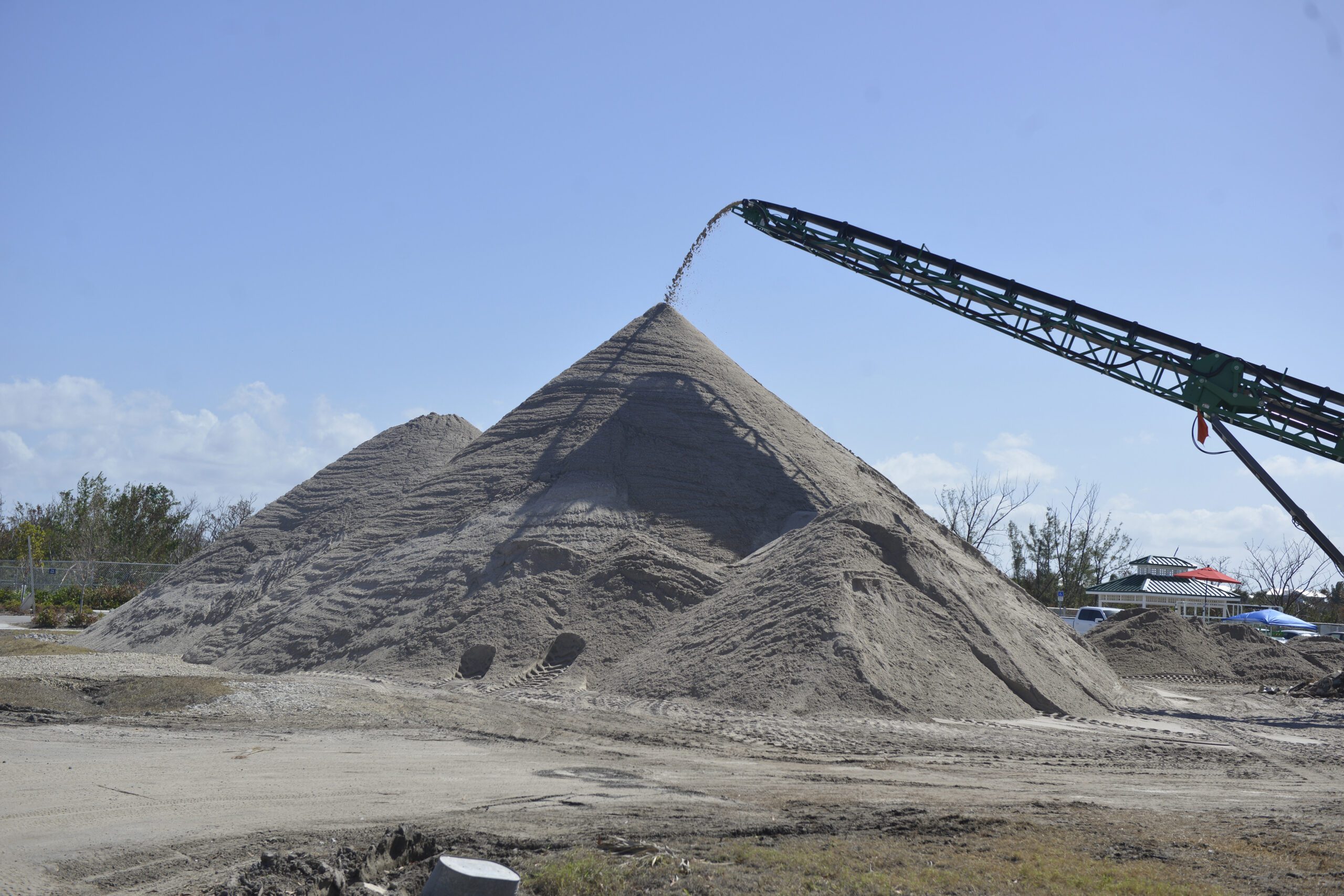 Above, the sand sifting process on Wheeler, after being trucked from streets across the island. Wheeler is normally the loc…