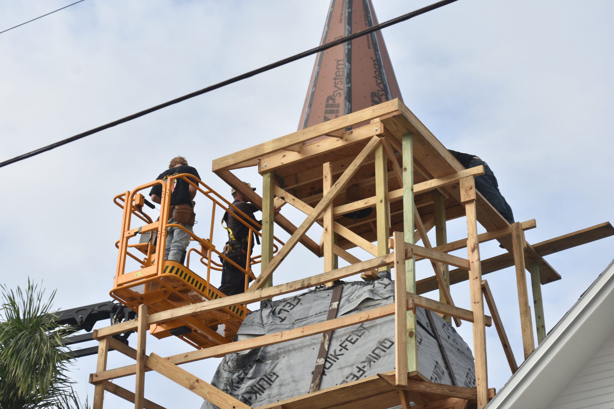 First Baptist Church belfry and steeple rebuild continues