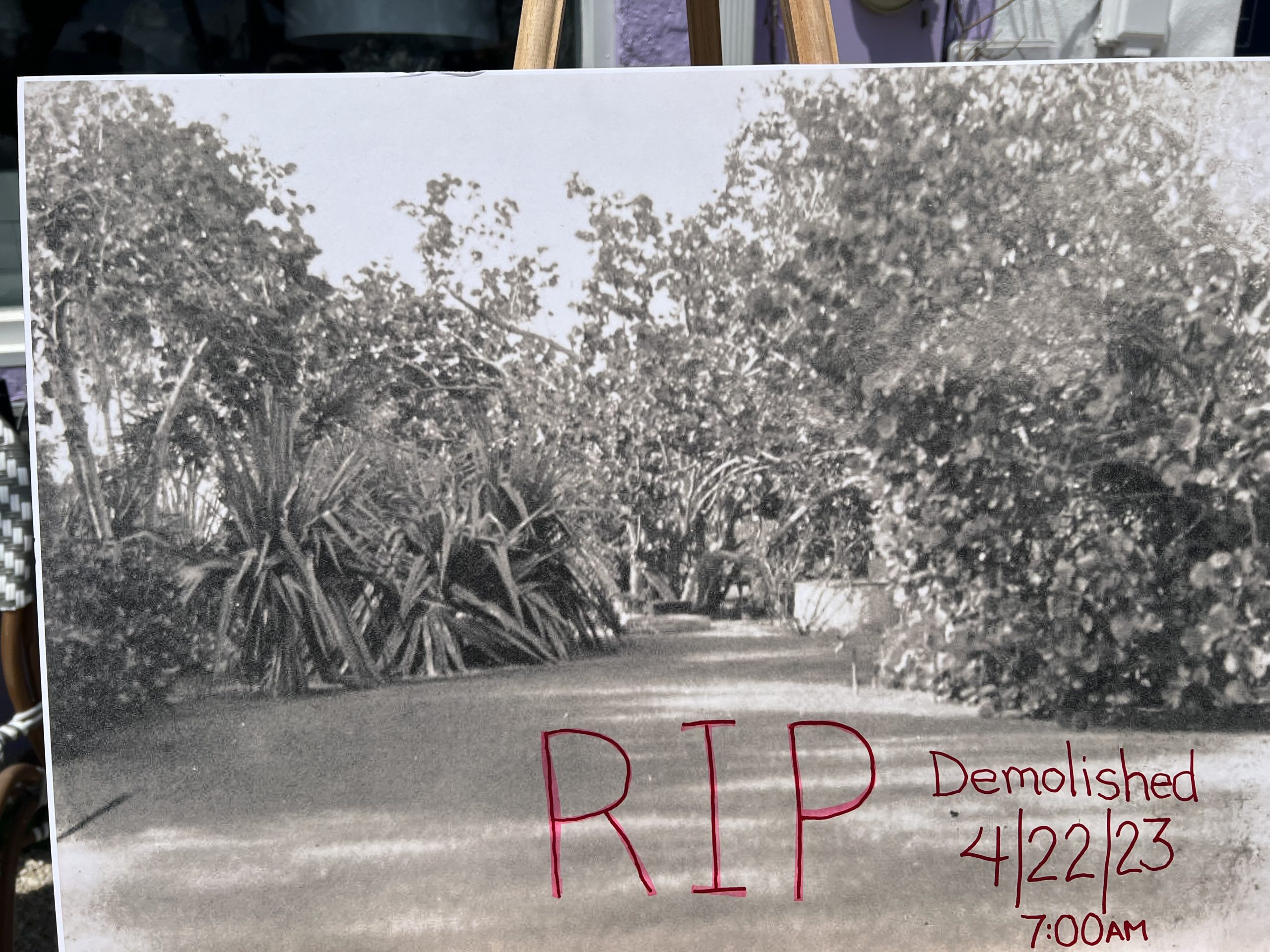 The Whispering Bench has been demolished as of this morning at 10:45 a.m.