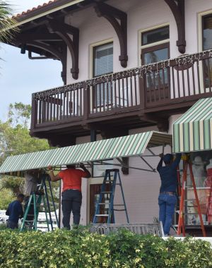 Awning reinstalled at The Depot in Boca Grande