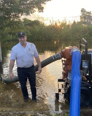 BOCA GRANDE – Like that fifth labor of Heracles, cleaning out the Augean stables, a crew from Lee County has installed a pumps to clear putrid standing water off Gasparilla Road today.