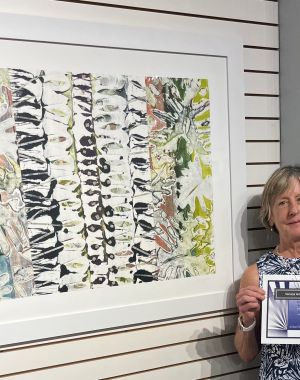 One More Time … Susan Shaffer’s encaustic monotype “Forest” recently received a Merit Award at the Venice Art Center’s juried exhibition, Colors in Motion – marking her second ribbon of the season…