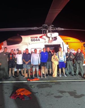 Coast Guard rescues child and seven adults 36 miles off coast