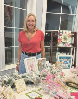 Local artist Dawn Barry-Bryan introduced her art collection last week at The Hammocks Cape Haze. Dawn’s pieces are mixed-media collages that blend seashells, textiles, beads and vintage illustra…