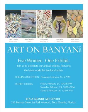It’s the sixteenth year of celebrating creative innovation for the “Art on Banyan: Five Women” Exhibit, presented at the Boca Grande Art Center. This year the group welcomes a new addition, ceramic…