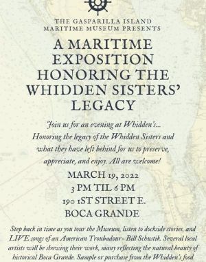 This Saturday, March 19, The Gasparilla Island Maritime Museum is proud to introduce a mix of old and new together, as they honor the Whidden sisters’ legacy. The program will run from 3 to 6 p.m. a…