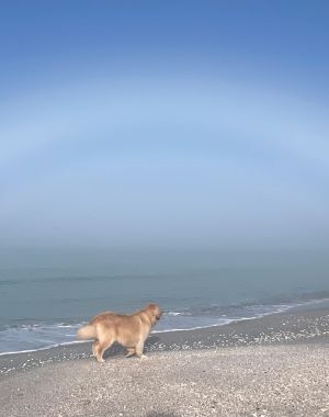 Lucy, the Shaffer’s family dog checking out a rare fogbow last week during the rolling of the fog bank mid day.