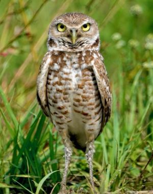 This burrowing owl was just off Gasparilla Road on Tuesday, near Coral Creek Airport. The owls are good at adapting grasslands and golf courses. It is one of the smallest owls in Florida. Main threa…