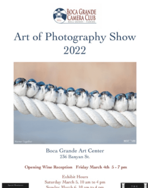 The Boca Grande Camera Club is excited to bring back The “Photography As Art” Show at the Boca Grande Art Center featuring a record-breaking 22 exhibitors!