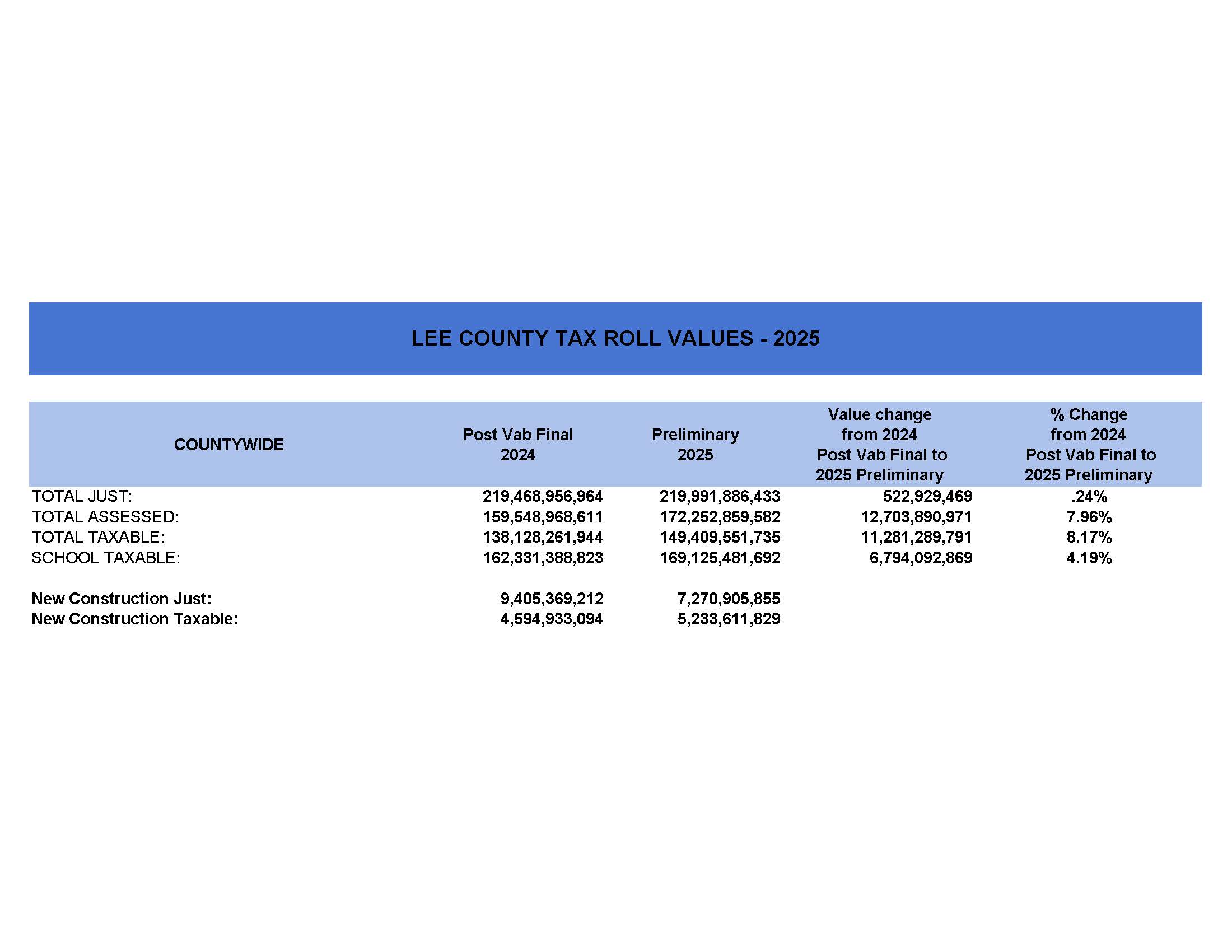 Lee appraiser releases 2025 tax roll values