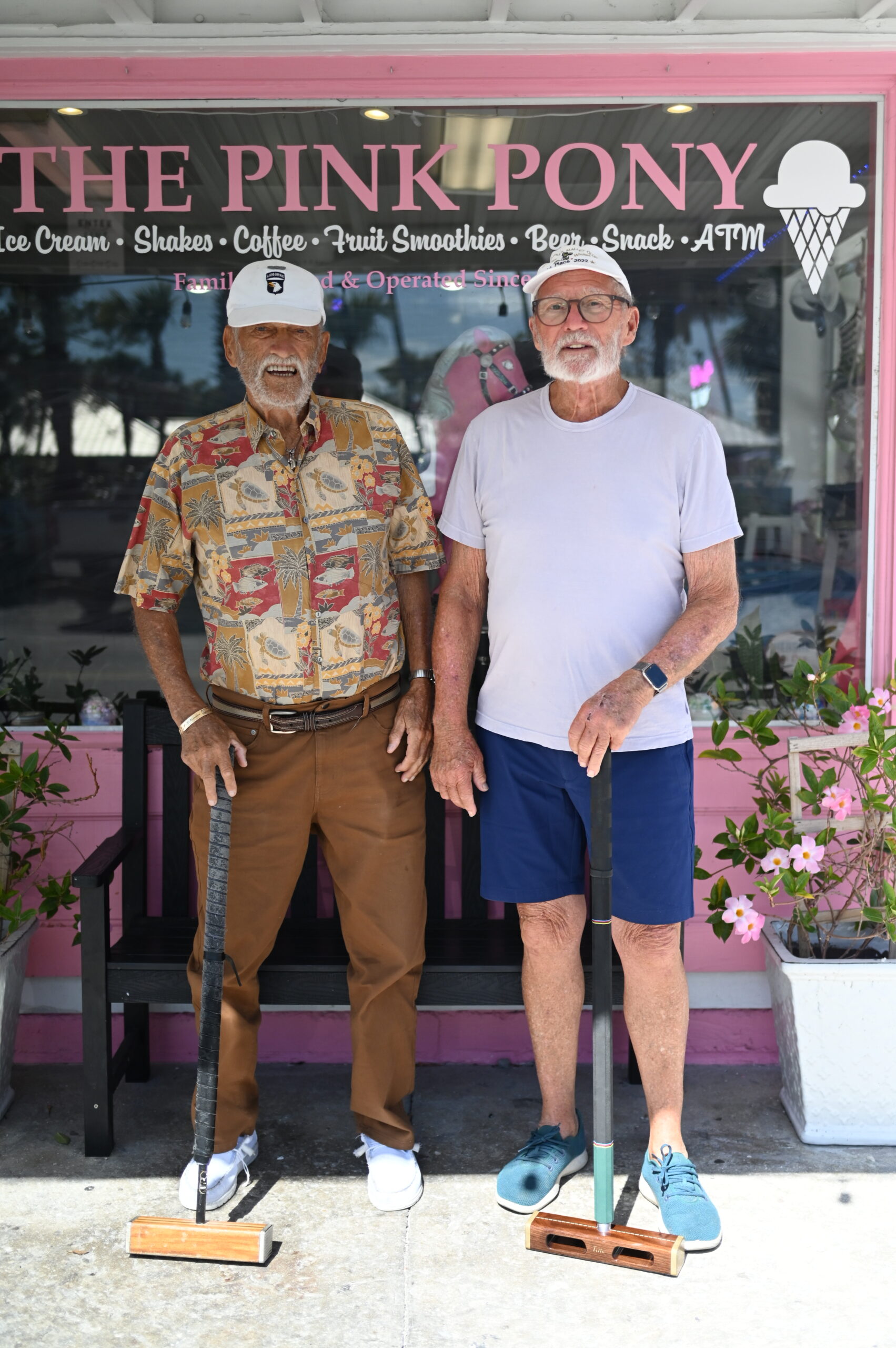 Ken Heimann, Sr (l) and Brad Tate celebrate a recent croquet victory. Photo by Matt