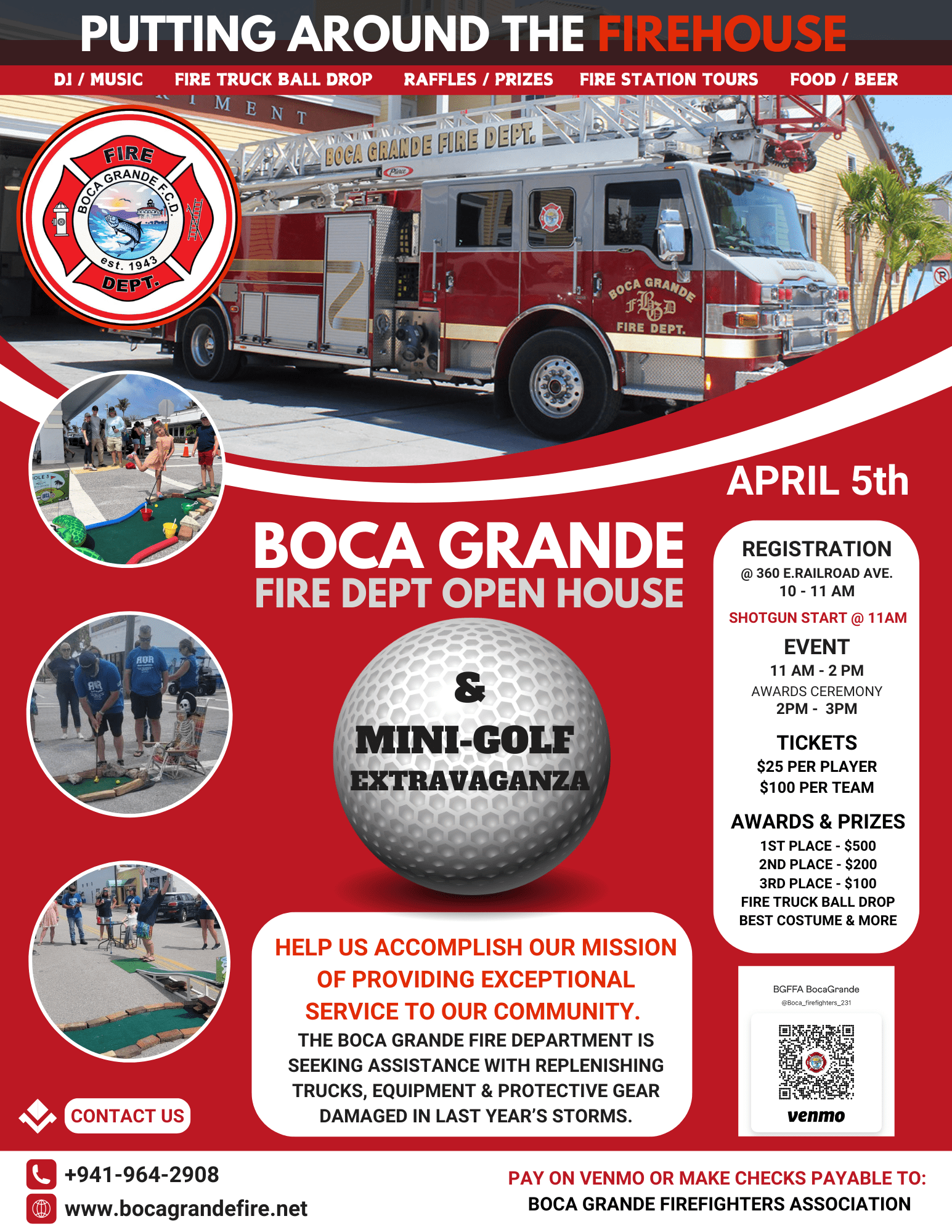 The Boca Grande Fire Department is once again holding its Putting Around Boca Grande open house on April 5. The Fire Department is raising money to replenish trucks, equipment and protective gear damaged in last year’s hurricanes.