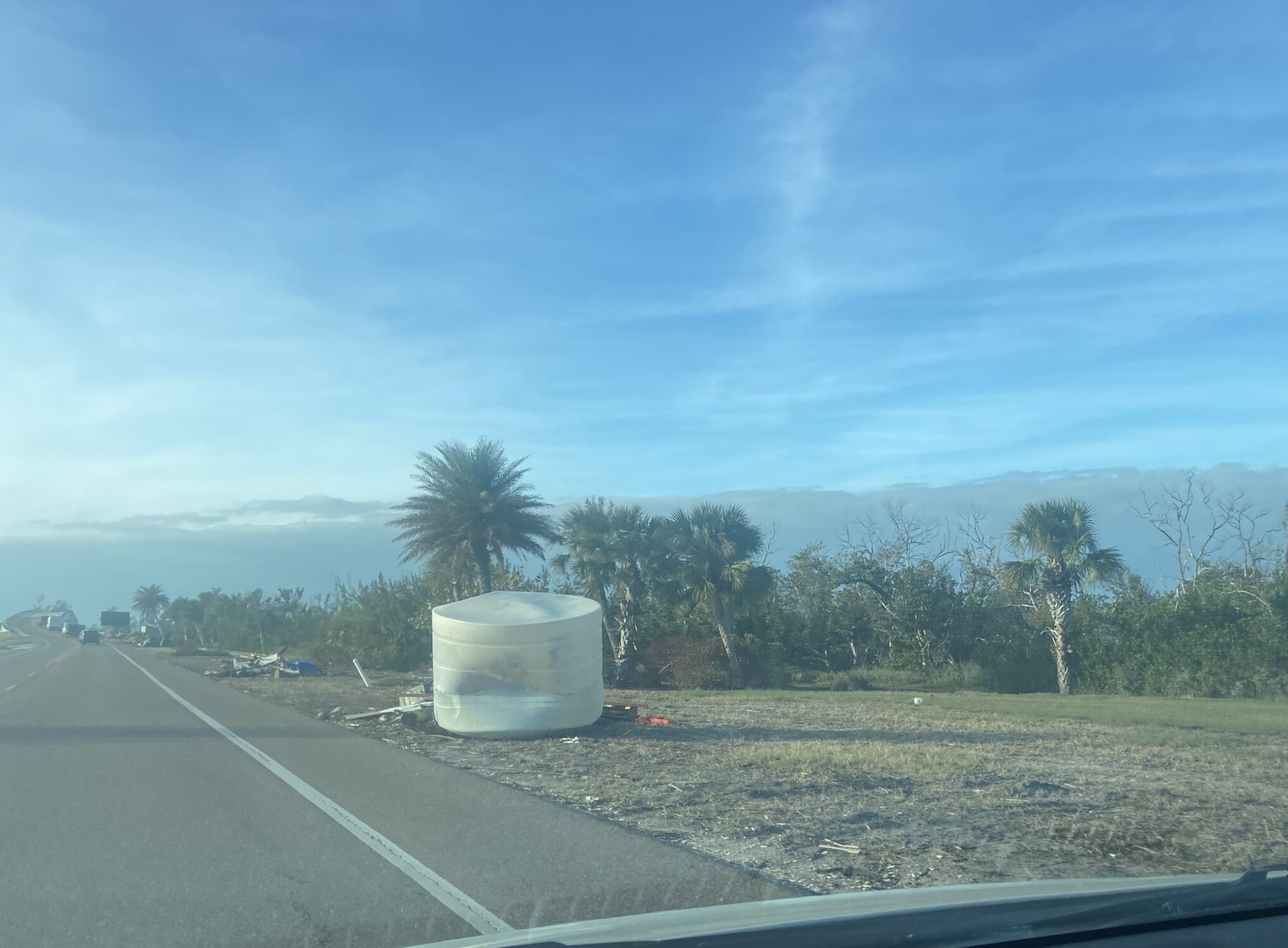 She had to tell her that they were merely water tanks, and they were one of many things that washed up on the Causeway during Helene and Milton. GIBA has sorted the debris out of the mangroves, but there it waits.