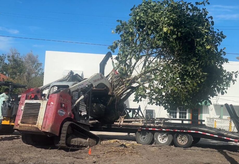 During the first week, the crews focused on site preparation. “On Monday, April 28, our trees began to arrive. It is so exciting to watch these large trees arrive and be put into the ground,” said Bruce Carbonari, GICIA president, in a release. The landscape team traveled across the state to source the new trees and plants for this highly visible section of the Bike Path in downtown. This week’s tree installation includes sabal palms, thatch palms, canary palms, and a massive 20-foot-tall specimen banyan tree.