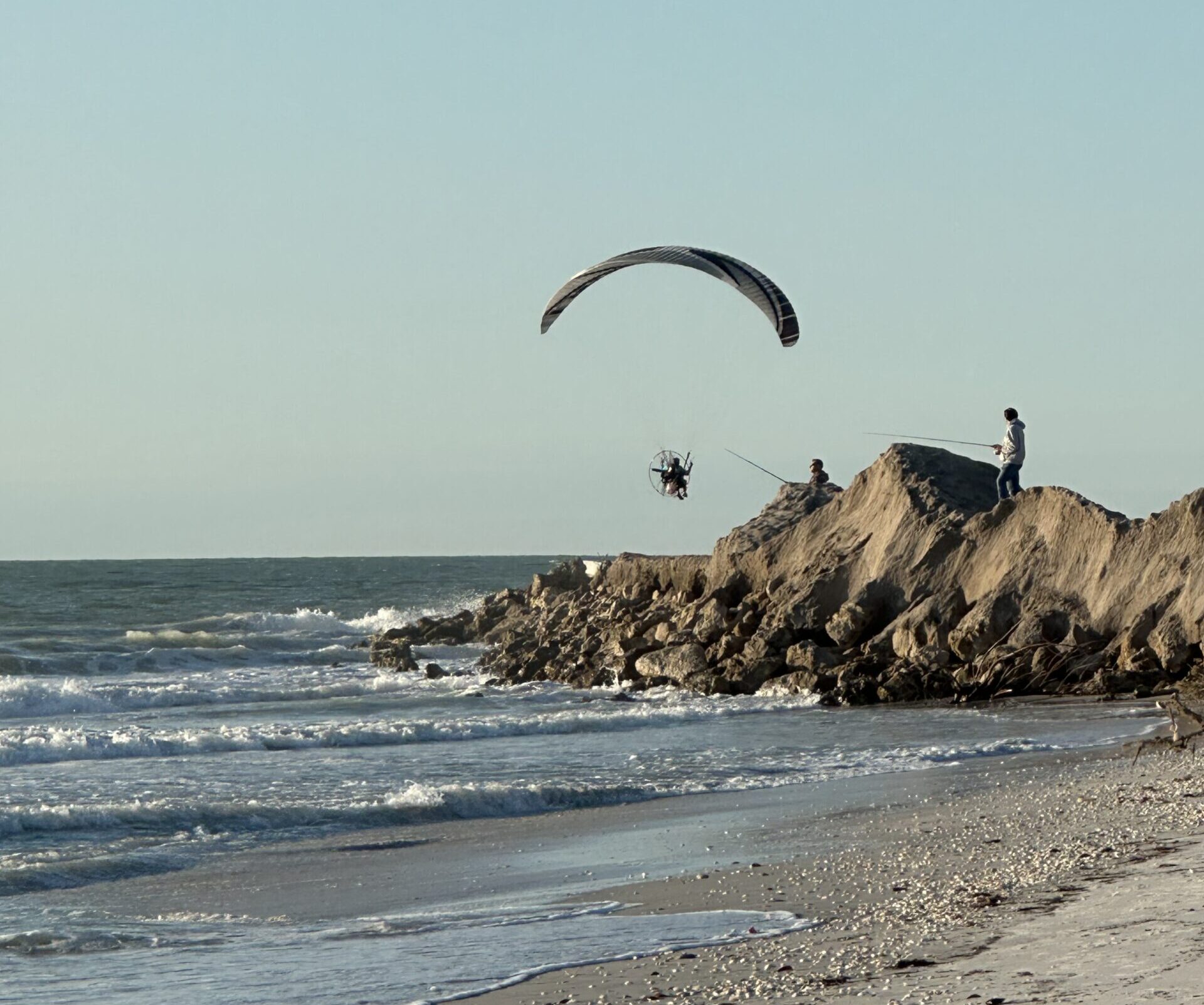 It might look like the West Coast or New England at the end of this rocky road, but this was the south end of Gasparilla Island, as an ultralight took a gander at the riprap along the Gulf two Sundays ago. Photo by Dusty