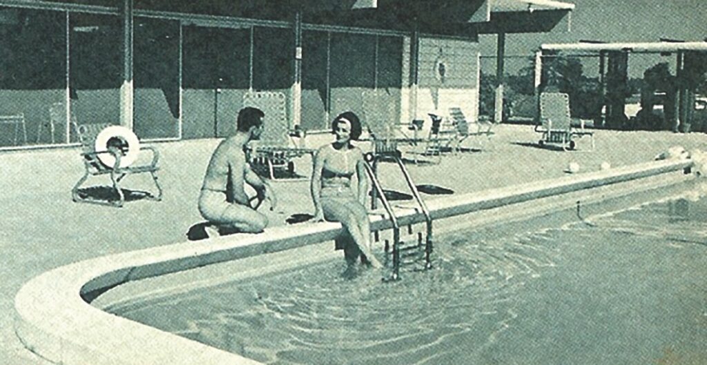 The center, which sits just off the fountain entrance at the corner of Spyglass Alley and Spaniards Road, is part of a site developed by Alfred and William Vanderbilt beginning in 1955. The building’s prominent architectural feature is its exposed concrete joists, typical of post-World War II modernism, now dubbed the “mid-century modern” style.