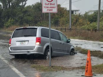 Above, High water on Gulf Boulevard and a stuck Dodge minivan. Photo by Jay Iacoma