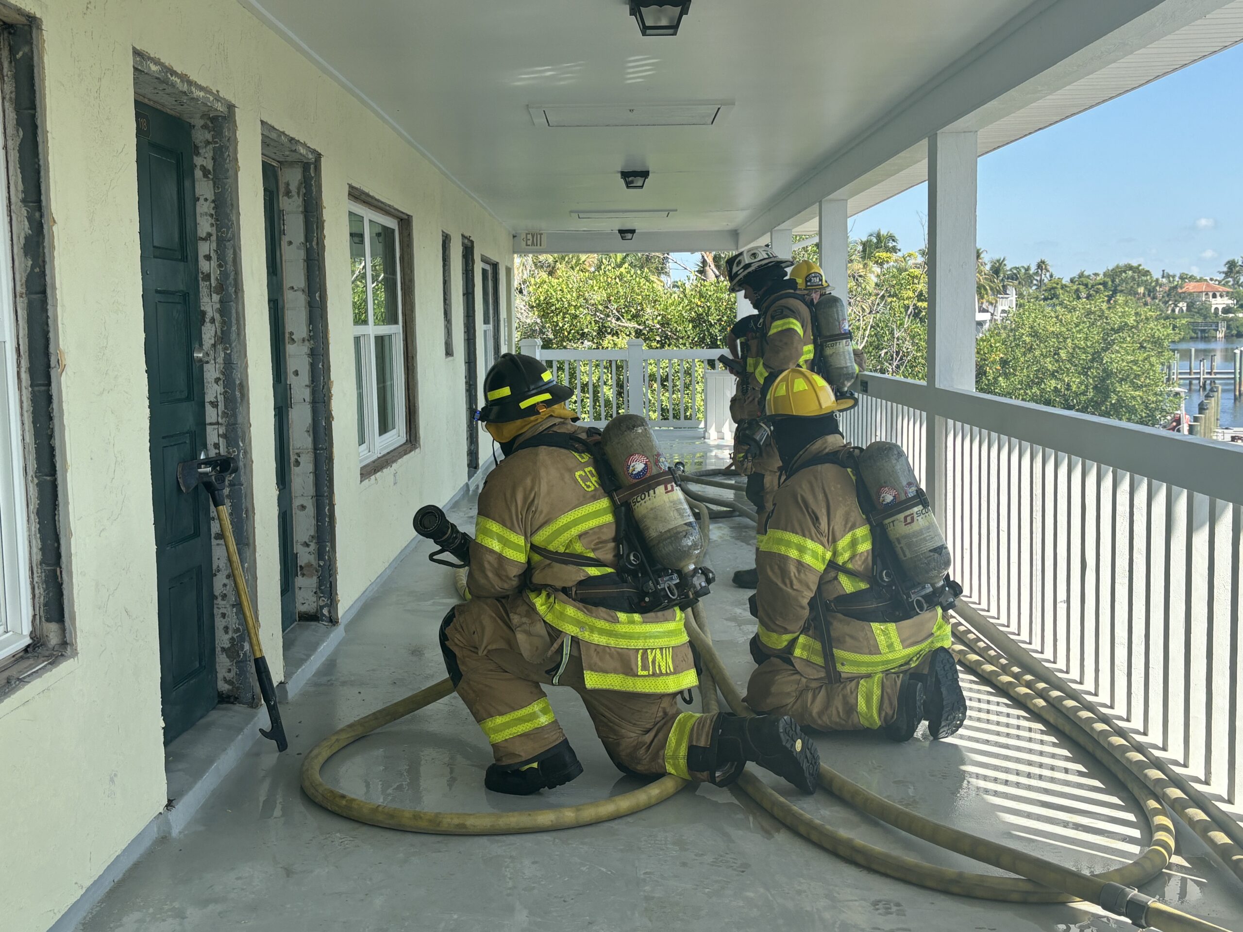 The Boca Grande Fire Department got permission to use The Innlet for training last week. Photographed on Wednesday, Aug. 13, groups of firefighters ran through drills outside and upstairs at the...