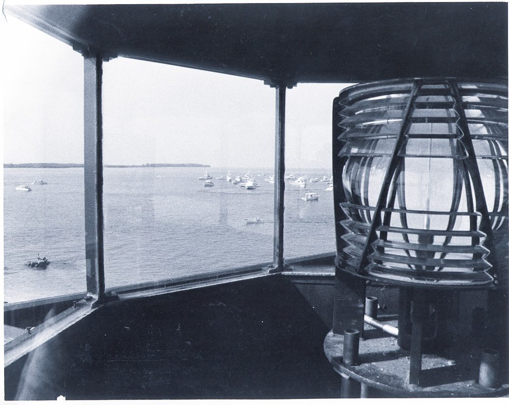 The Coast Guard range light was receiving a much-needed facelift. Rusted sections of the beacon were being repaired, the safety railing and many of the rivets were being replaced as well as sand blasting and painting the exterior.
