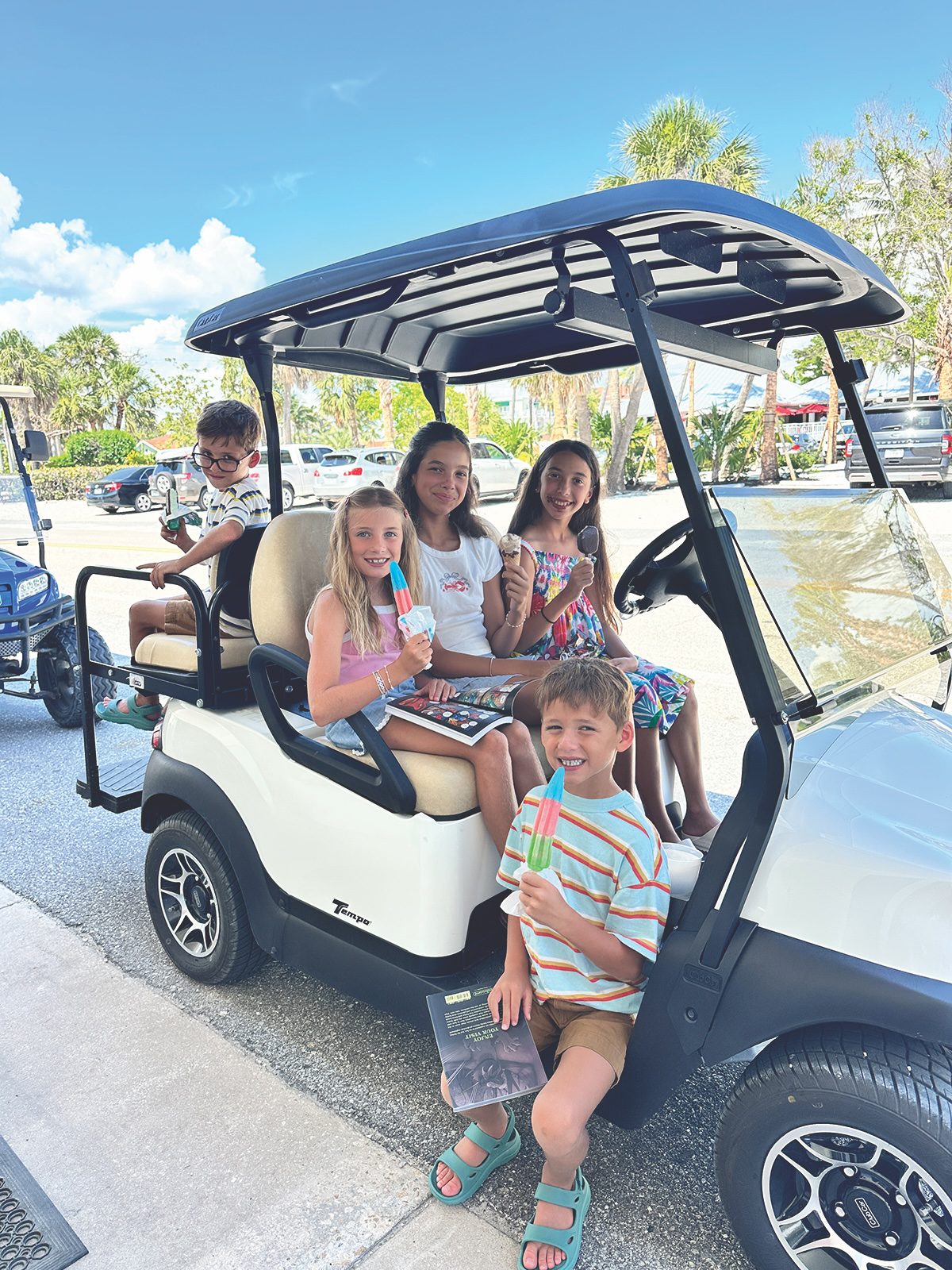 Kimberly Struhar at Kappy’s Island Shoppe Island Ice Cream serves up delicious ice cream with a smile. This smiling crew was caught outside Hudson’s Grocery with some wonderful red, white and blue treats of their own. The golf cart provided some nice shade to help the cool treats last a little longer.